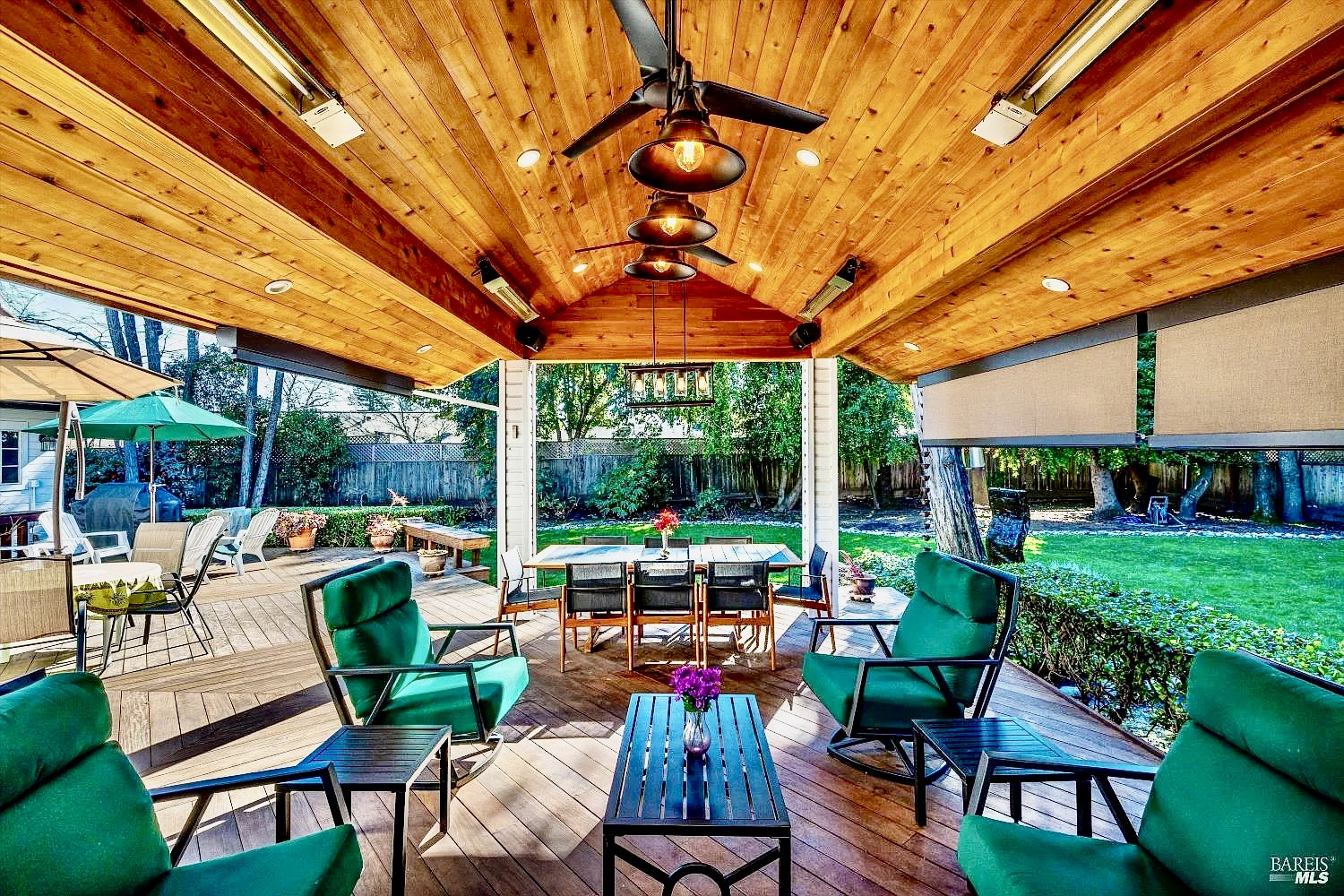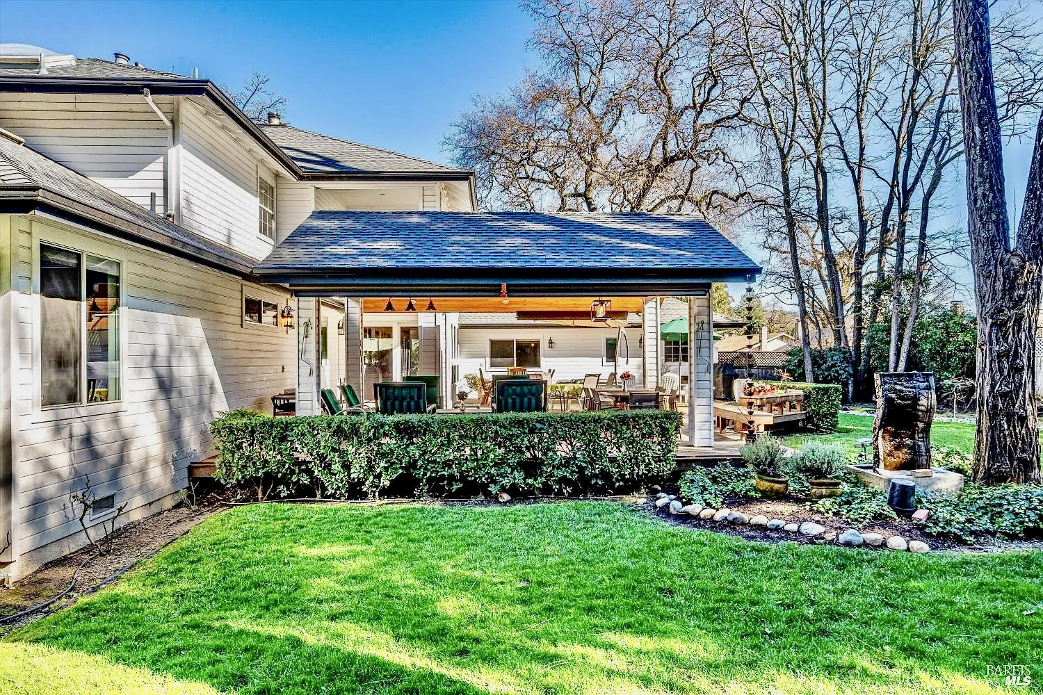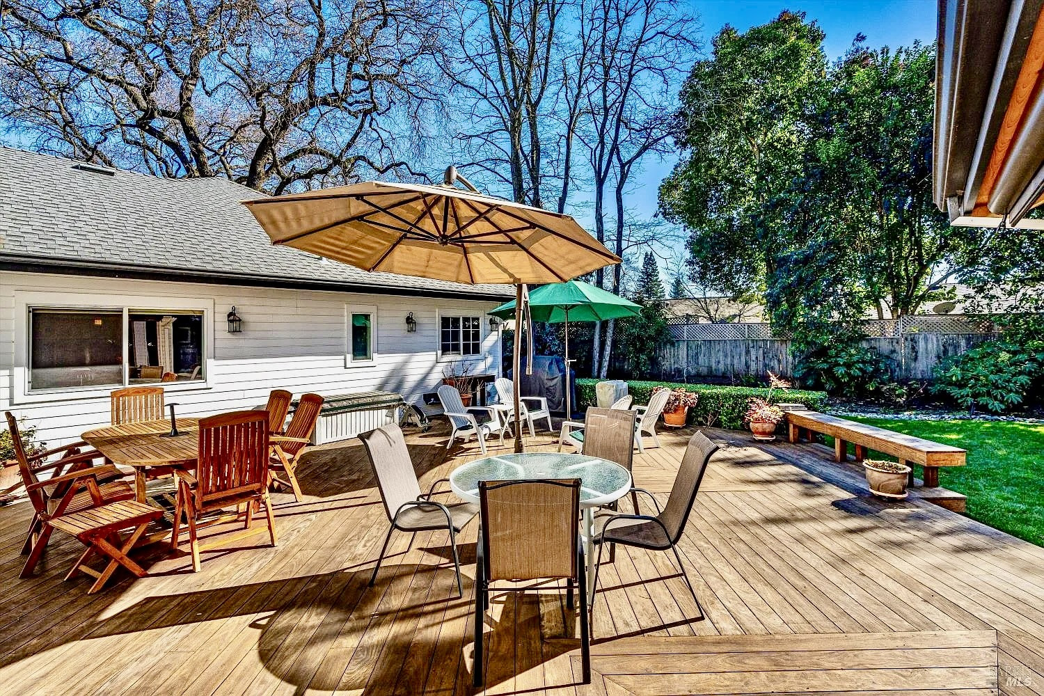 Stunning Sonoma property situated at the end of a cul-de-sac on over a half acre lot with park-like mature trees, offering refined Wine Country living. 934 Fairway Dr. has been meticulously maintained. Bright, open, & airy interiors are filled with natural light & soaring ceilings. The kitchen encompasses high-end appliances, island, premium cabinetry w/ pull-outs, a pantry cupboard, & peninsula with bar seating. The open kitchen flows into casual dining on one end & living space on the other, making this open layout conducive for gatherings of any size. Walk onto the stunning Ipe wood deck w/ custom paviliona newer six-figure additiondesigned for year-round indoor-outdoor enjoyment. The pavilion functions as a theater, or converts to an elegant alfresco dining & entertaining space. It is fully equipped with heaters, ceiling fans, sun shades, speakers, & screen, and connected to the home's AV system. Enjoy flexibility with 2 primary suites & an additional en-suite guest bedroom. The main-level Owner's suite features a beautiful high-end bathroom & generous walk-in closet. A versatile TV room off the hallway is pre-positioned to easily add a door & make a 4th bedroom or office. Upstairs, the 2nd primary suite provides an ideal private retreat for guests & has a covered balcony. (The Owners do have drawings available if a Buyer desires the upper level to have 2 bedrooms vs. the current large 1 bedroom.) Additional features include surround sound in the TV room, a whole-home & outdoor sound system, hardwood floors throughout main level, refrigerated wine room that can host approx. 2k bottles, Generac generator, 2 whole-house fans, and a 3-car garage w/ epoxy floors, no HOA, abundant storage, & AT&T fiber optics available. You'll love the location in the heart of Sonoma's wine country, minutes from award-winning wineries, acclaimed dining, & charming downtown Sonoma. The Sonoma Golf Club is in the area offering golf, tennis, & a vibrant social scene. An exceptional opportunity to enjoy a private oasis w/ updates galore that fully captures the essence of Sonoma living.