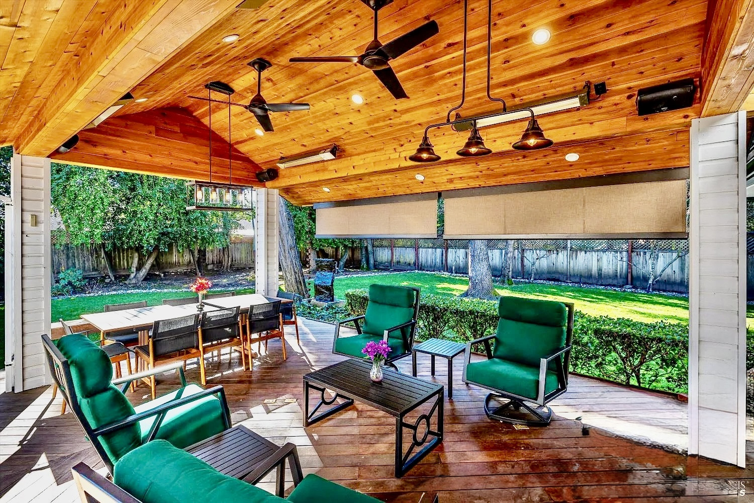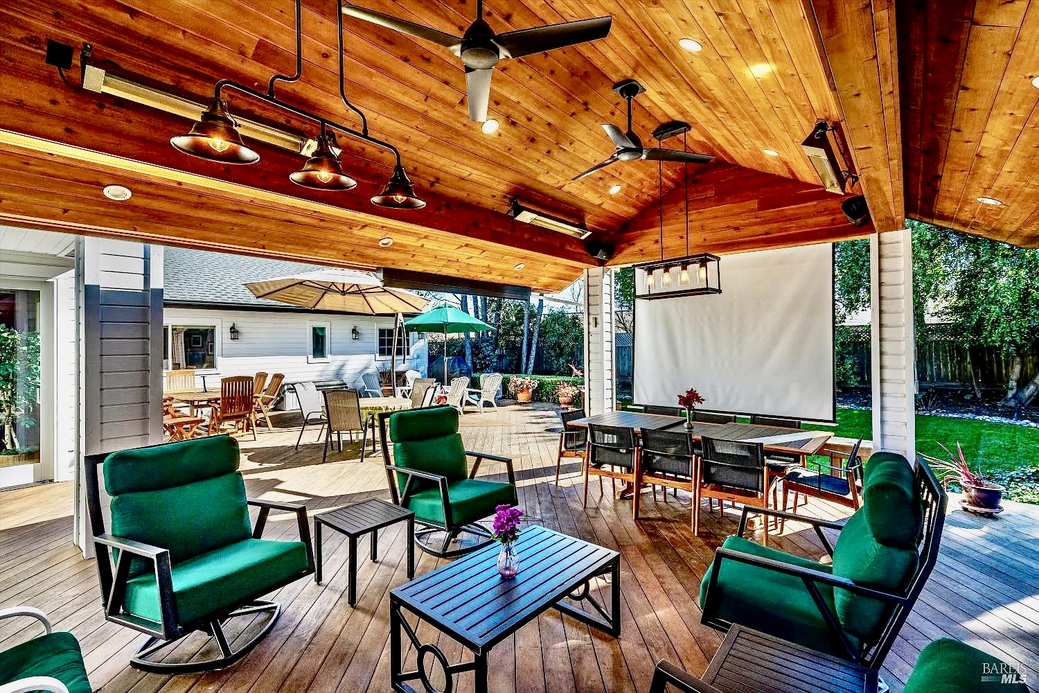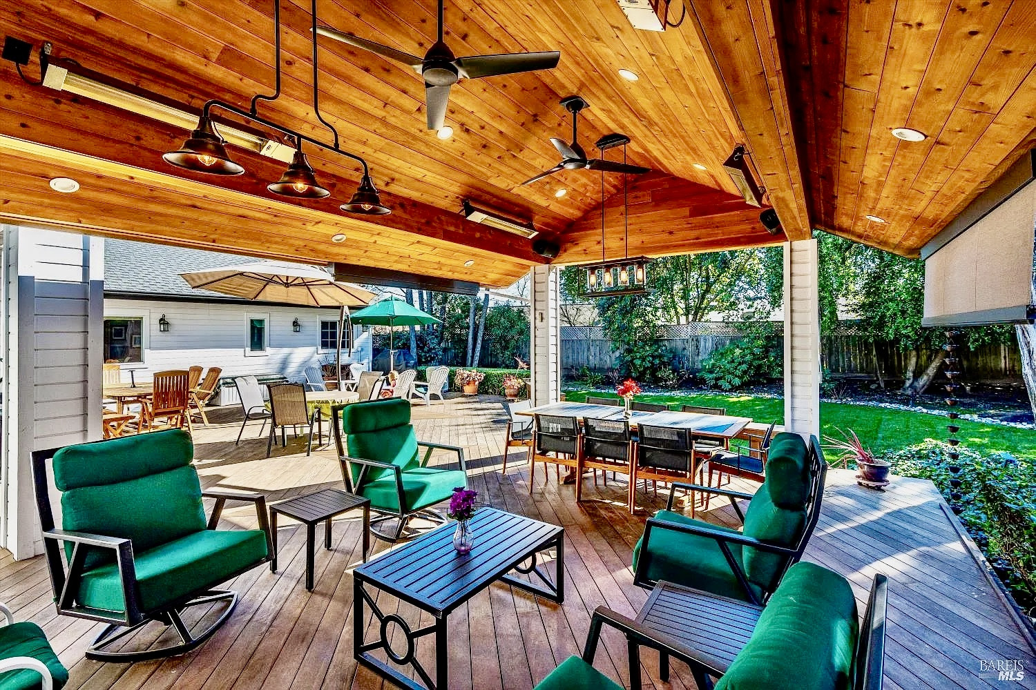 Stunning Sonoma property situated at the end of a cul-de-sac on over a half acre lot with park-like mature trees, offering refined Wine Country living. 934 Fairway Dr. has been meticulously maintained. Bright, open, & airy interiors are filled with natural light & soaring ceilings. The kitchen encompasses high-end appliances, island, premium cabinetry w/ pull-outs, a pantry cupboard, & peninsula with bar seating. The open kitchen flows into casual dining on one end & living space on the other, making this open layout conducive for gatherings of any size. Walk onto the stunning Ipe wood deck w/ custom paviliona newer six-figure additiondesigned for year-round indoor-outdoor enjoyment. The pavilion functions as a theater, or converts to an elegant alfresco dining & entertaining space. It is fully equipped with heaters, ceiling fans, sun shades, speakers, & screen, and connected to the home's AV system. Enjoy flexibility with 2 primary suites & an additional en-suite guest bedroom. The main-level Owner's suite features a beautiful high-end bathroom & generous walk-in closet. A versatile TV room off the hallway is pre-positioned to easily add a door & make a 4th bedroom or office. Upstairs, the 2nd primary suite provides an ideal private retreat for guests & has a covered balcony. (The Owners do have drawings available if a Buyer desires the upper level to have 2 bedrooms vs. the current large 1 bedroom.) Additional features include surround sound in the TV room, a whole-home & outdoor sound system, hardwood floors throughout main level, refrigerated wine room that can host approx. 2k bottles, Generac generator, 2 whole-house fans, and a 3-car garage w/ epoxy floors, no HOA, abundant storage, & AT&T fiber optics available. You'll love the location in the heart of Sonoma's wine country, minutes from award-winning wineries, acclaimed dining, & charming downtown Sonoma. The Sonoma Golf Club is in the area offering golf, tennis, & a vibrant social scene. An exceptional opportunity to enjoy a private oasis w/ updates galore that fully captures the essence of Sonoma living.