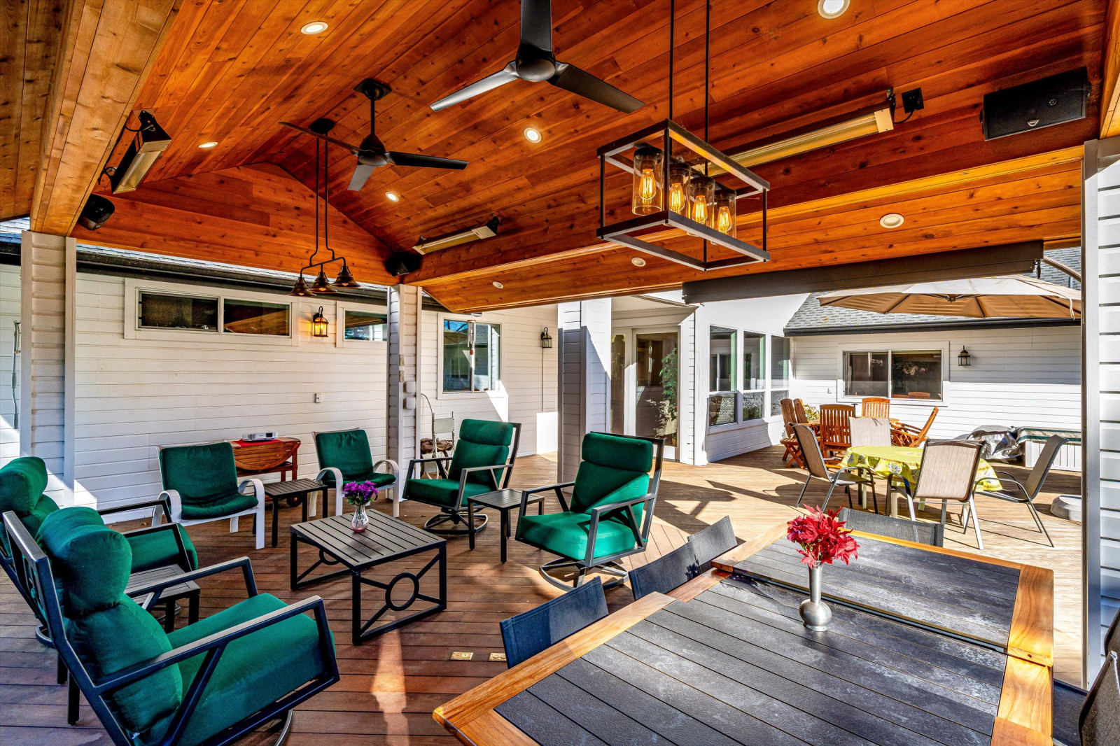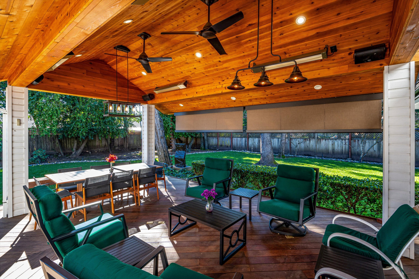 Beautifully designed, the gazebo has heaters, ceiling fans, sun shades,