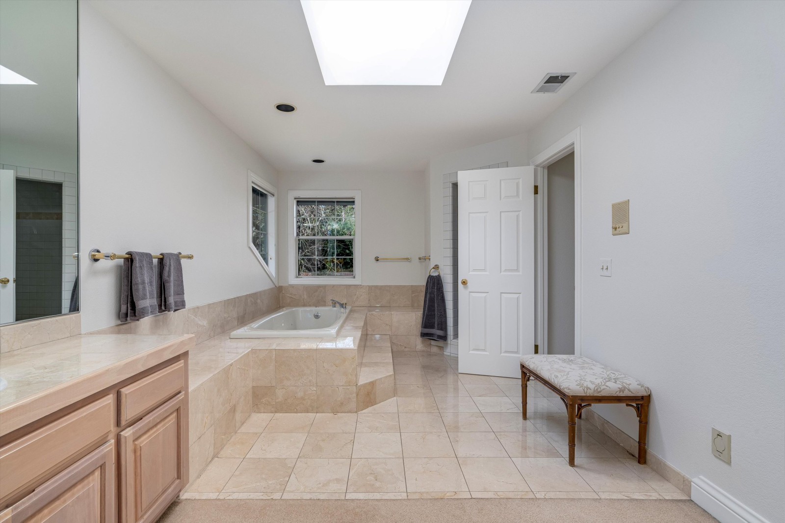 The ground floor primary suite offers a wonderfully appointed bathroom